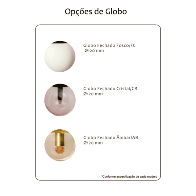 | Vidro / Cor | Globo Fechado Ø12cm - (Fosco = FC / Cristal = CR / Ambar = AB) |